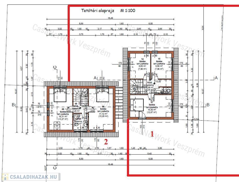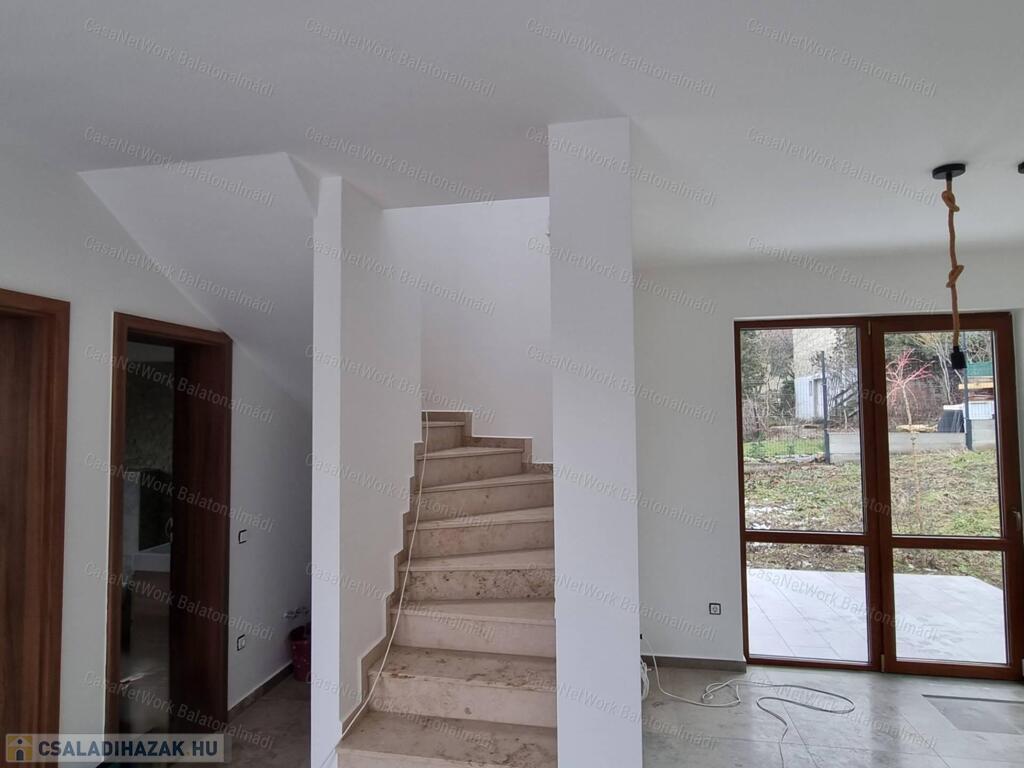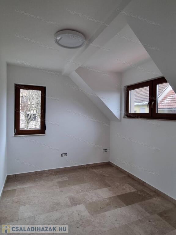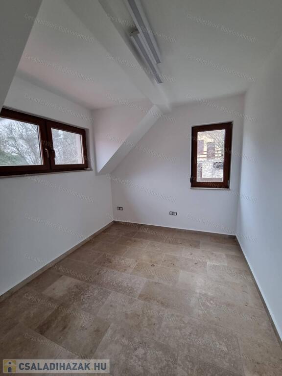 - emelet: háztartási helyiség, egy toalett, három szoba rálátással a környező tájra és a Balatonra
