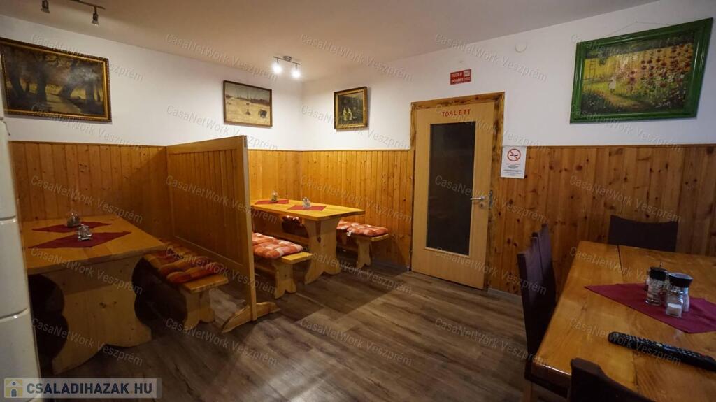 - a vendéglő: konyha előkészítőkkel, belső terem, mosdók, zárható nagy terasz, pult és egy látványgrill; raktár, pince és személyzeti helyiségek