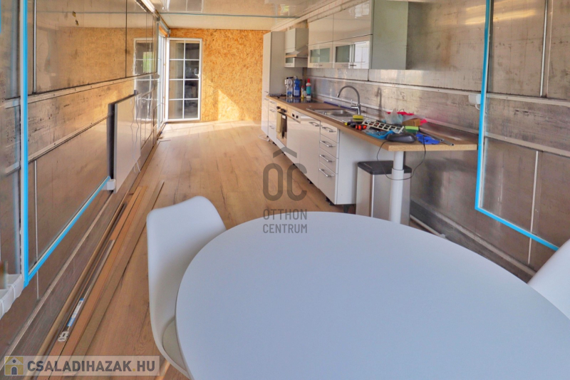 A konténerek téliesítve vannak, 15 cm-es szigeteléssel, infra fűtéssel, 2 fürdőszoba valamint 2 hálószoba van egyikben kialakítva . a másik konyha+nappaliként lett felszerelve, a harmadik kialakításra vár. U alakú elhelyezésüknek köszönhetően aki kicsinyelli a teret egy hatalmas nappalit vagy közösségi teret tud kialakítani közöttük.