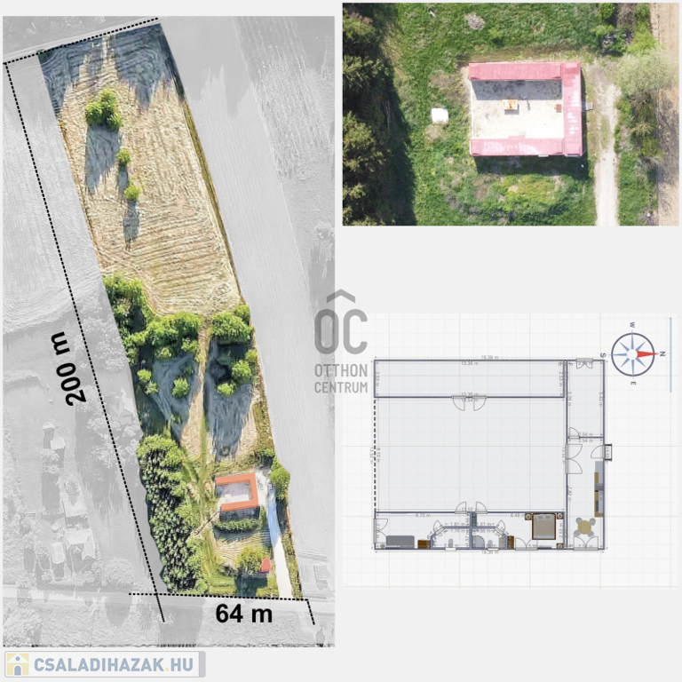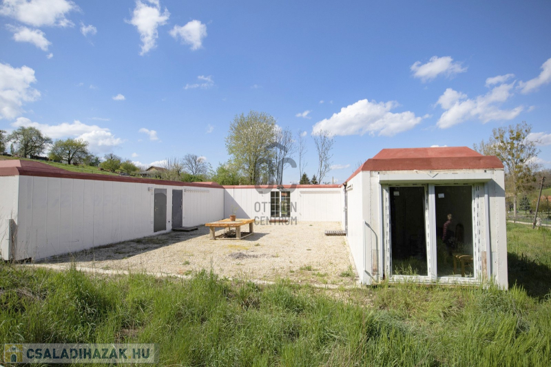 A területen jelenleg három Interfrigo izotherm konténerből álló épület együttes található, melyek bárhogy variálhatóak. Az eredeti térképen még fel van tüntetve a korábbi gazdasági épület, így akár annak az újra építése is egyszerűen megoldható, bár a telek beépíttethetősége 30%. A terület épülethez közeli telekhatárán kis fenyves található, feljebb idősebb gyümölcsfák valamint rét.
