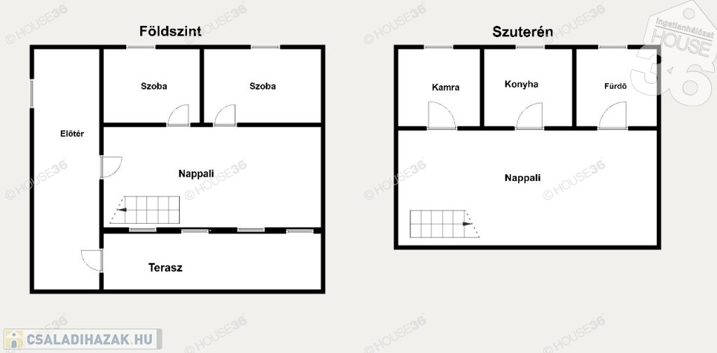 -szuterénben : nappali-étkező, kamra, konyha, fürdőszoba