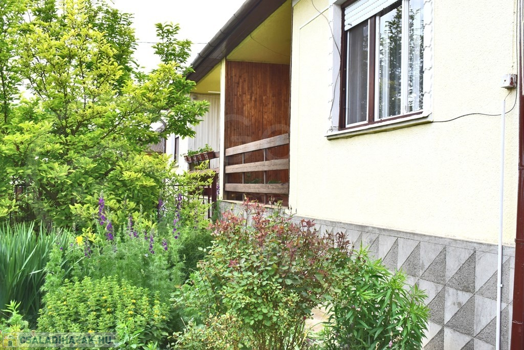 Az udvar dísznövényekkel és díszcserjékkel telepítve. A hátsó kertben gondosan művelt veteményes és termőfák vannak.