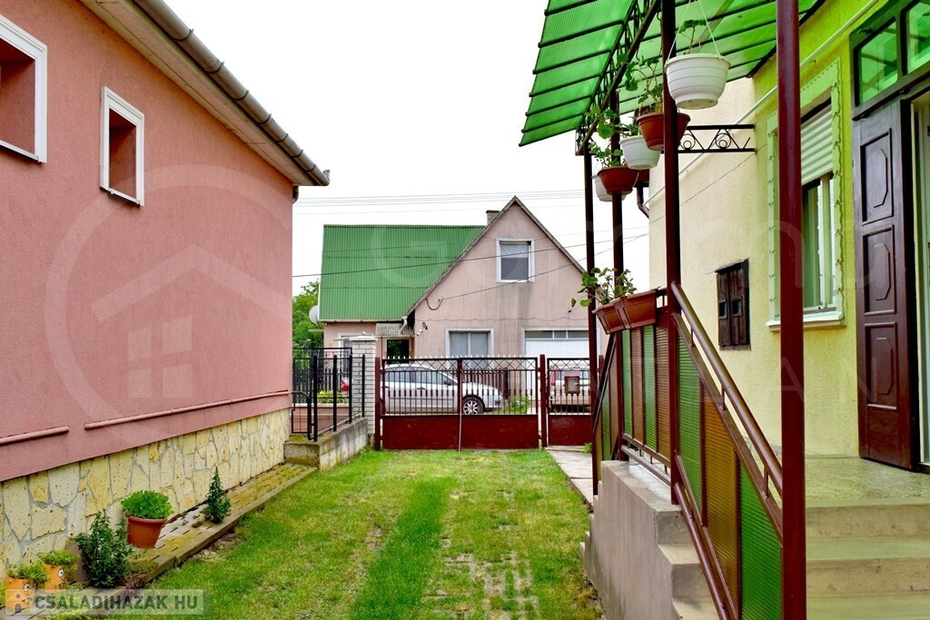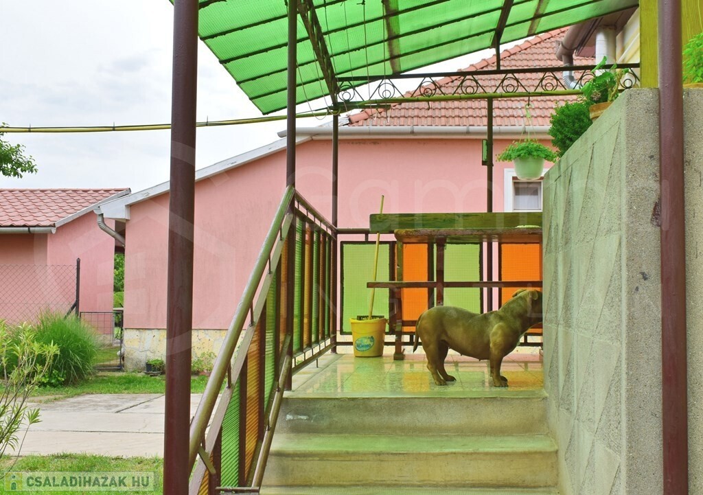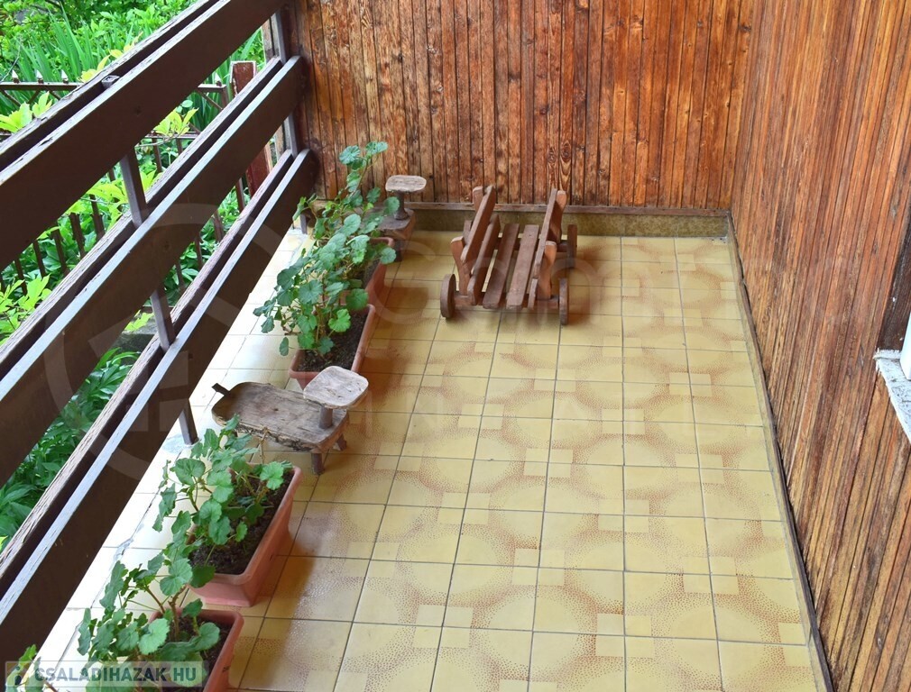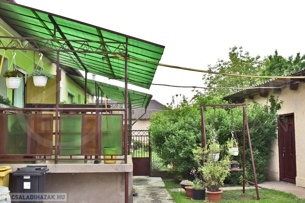 A hátsó fedett terasz járólappal burkolt, alatta egy száraz, tiszta 25m2-es pince található.
