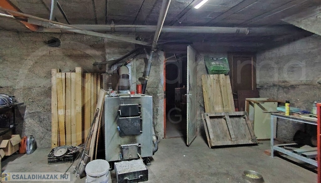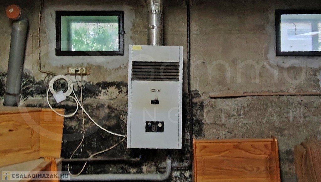 A fűtésről egy vegyestüzelésű kazán és egy gázcirkó is gondoskodik, radiátor hőleadókkal. A gépészet, 40m2-es pincrészben kapott helyet, amely házból is közvetlenül megközelíthető.