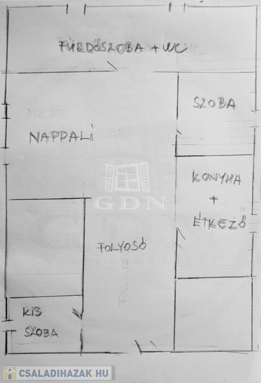 Helyiségek: konyha-étkező, nappali, 1 hálószoba, 1 kisebb szoba, fürdőszoba + WC