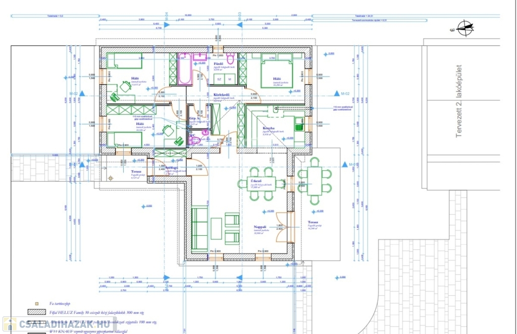 Tető: teljes kivitelben, de a terasz fedése nélkül
