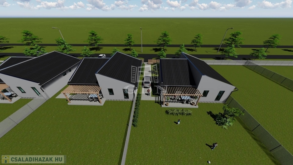 Legyen Öné ez a Tiszaszigeten épülő, 92 m²-es, 4 szobás családi ház ajánlata, 350 m²-es telken, kulcsrakész áron 74,8 millió Ft-ért a Sziget Lakóparkban!