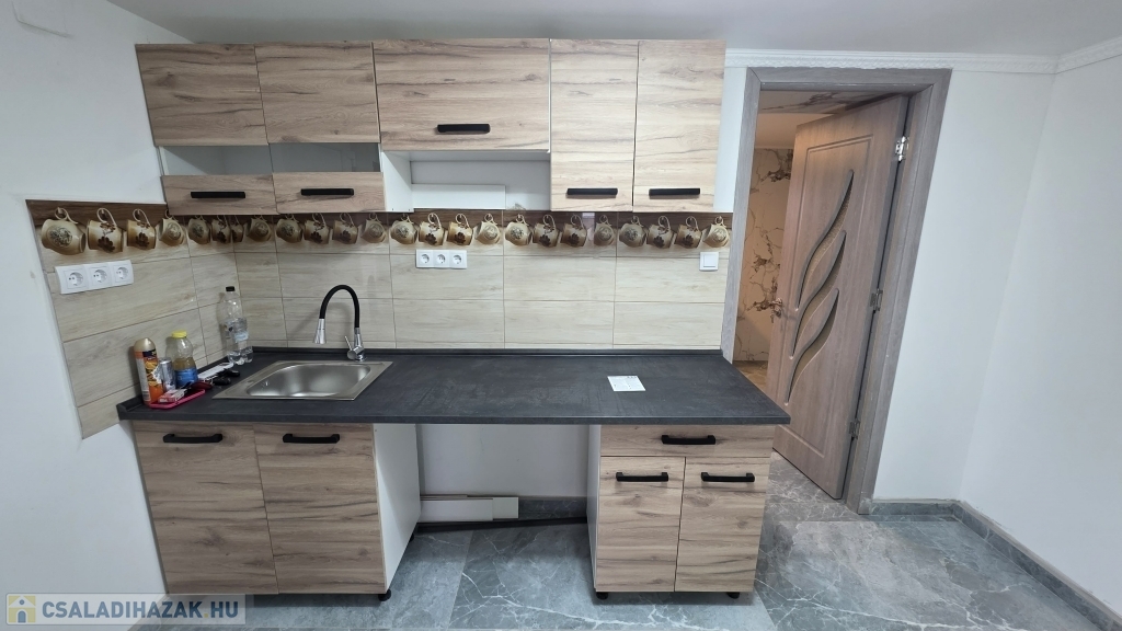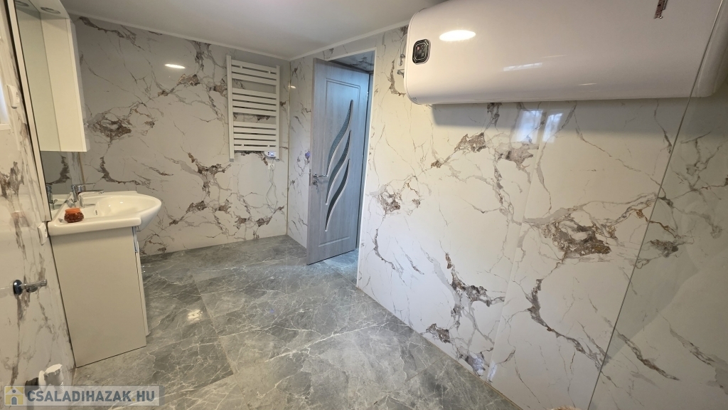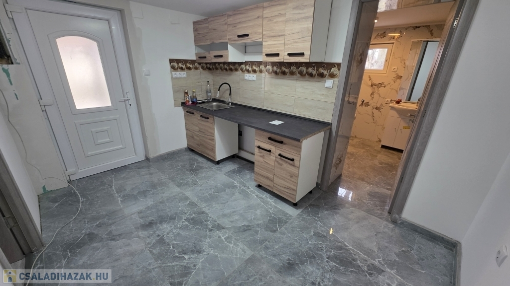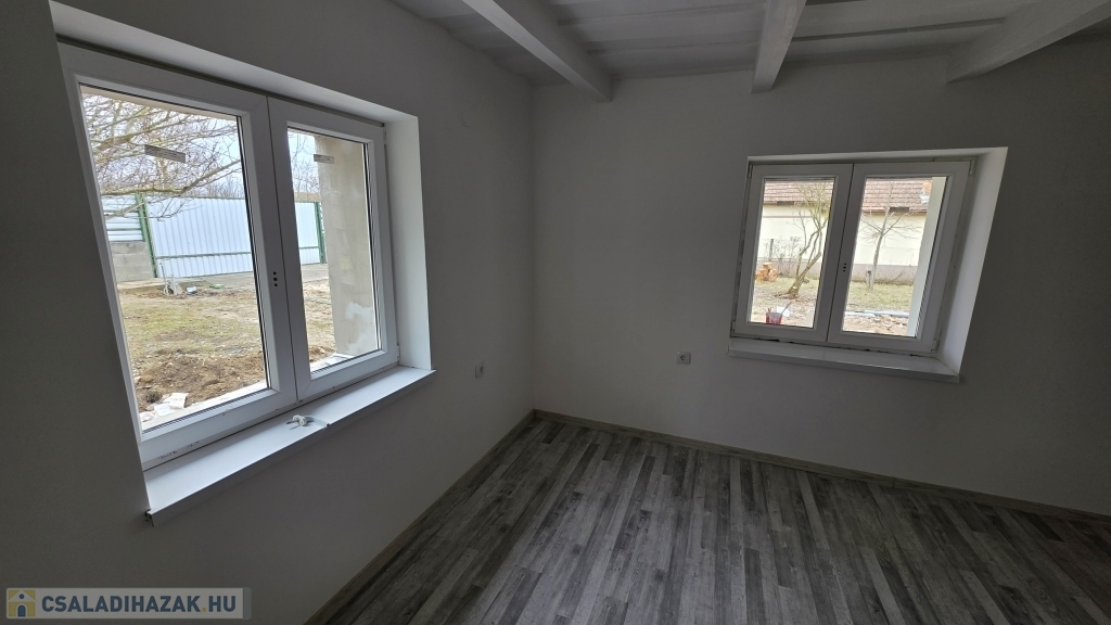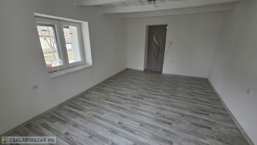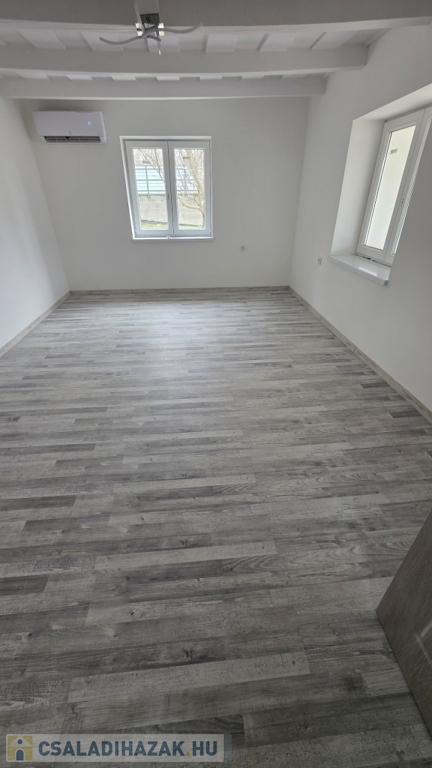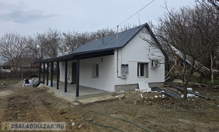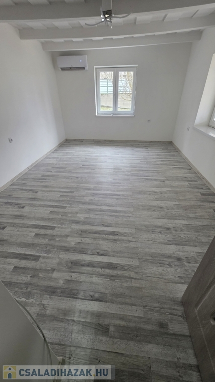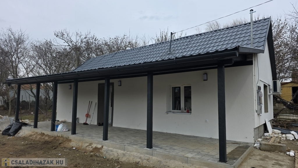 Az épület idén került felújításra - még most is zajlik a befejezése. Kialakításra került egy szép, nagy fedett terasz. Innen nyílik a bejárat a házba, mely a konyha/étkezőbe vezet. Balra találjuk a fürdő/mosdó helyiséget, ahol zuhanyzó kerül kialakításra, mosdóval. A mosdó csapteleppel és kis mosdó alatti szekrénykével kerül átadásra. A konyhában és a fürdőszobában hideg burkolat kerül - 60x60-as járólapokkal (alatta lépésálló szigeteléssel, 4-es betonhálóval és 10 cm-es padloponnal) - a falra pedig csempe került. A konyhában a konyhabútor is része az ajánlatnak a mosogatóval - gépek nélkül. A szobába laminált parketta burkolat került, mely alatt természetesen padlópon és szivacs szigetelés található. Az épületben a teljes villanyhálózat, vízvezetékhálózat kicsererélésre került - 32 amperes villanyóra van igénylés alatt. Az otthon melegét 1 db inverteres klíma és fali elektromos panel fogja adni. A falak belső és külső festése folyamatban (fehér falak - lábazat szürke) , valamint a ház külső szigetelése 15 cm-es nikecellel történik. A nyílászárók is kicserélésre kerültek - új ablakok + új párkányok, bejárati ajtó és a belső ajtók is kicserélésre fognak kerülni. A födémen 10 cm-es közetgyapot szigeletés várható. A padlásfeljáró a fürdőszobából közelíthető meg.