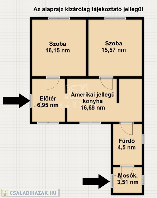 Az épület 1950-ben épült, 2 szobával, amerikai jellegű konyhával, fürdővel és mosókonyhával rendelkezik. Fűtése gázkonvektor, a meleg vizet villanybojler biztosítja.