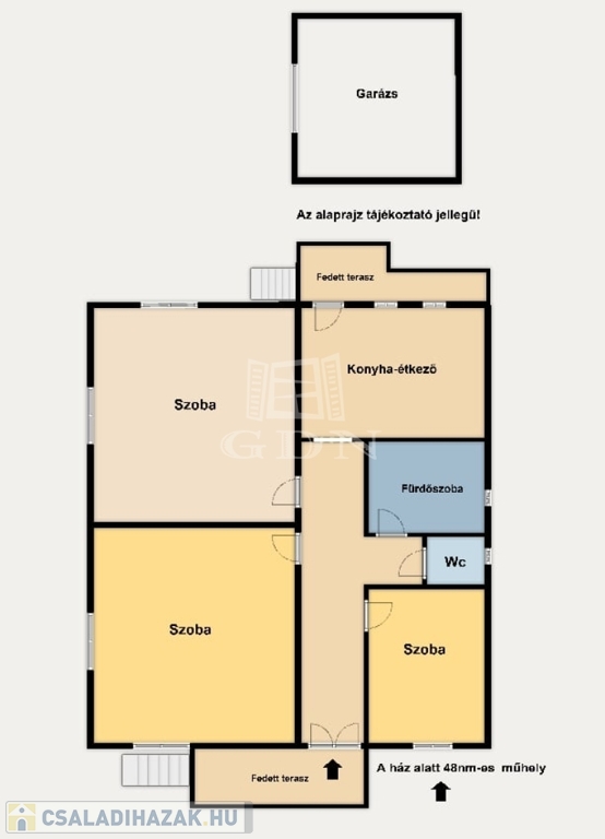 A masszív háromszintes épület 1982-ben épült, állapota korának megfelelő, modernizálásra-felújításra szorul. Az ház alatt találunk egy 48nm-es alagsori műhelyt 3X20A ipari árammal , valamint az udvaron egy praktikus garázs-melléképület kapott helyett ami egyéb tevékenységre-tárolásra alkalmas.