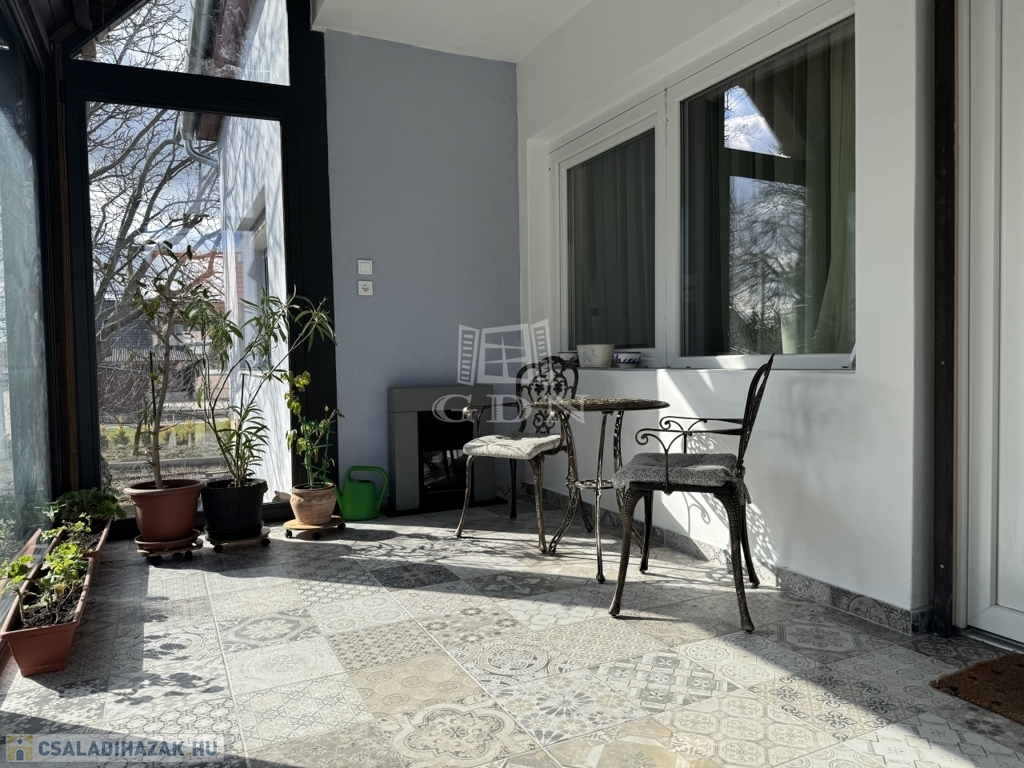 A tetőtéri fürdőszobát kibővítették és teljesen felújították. Az udvar felőli teraszt télikertté alakították, kiváló minőségű alumínium nyílászárók beépítésével és új padlóburkolat lerakásával.