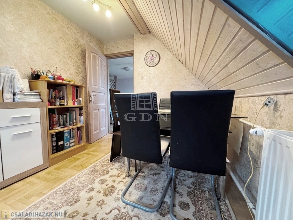 A szobákban tölgyfa parketta, a többi helyiségben kerámia burkolat van. A ház központi fűtéses, a meleg víz szolgáltatásról villanybojler gondoskodik. A gázkazán mellett új vegyes tüzelésű kazán, valamint a nappaliban egy 8kW teljesítményű, gránitburkolatos kandallókályha biztosítja a meleget, amely alkalmas az egész földszint befűtésére is.
