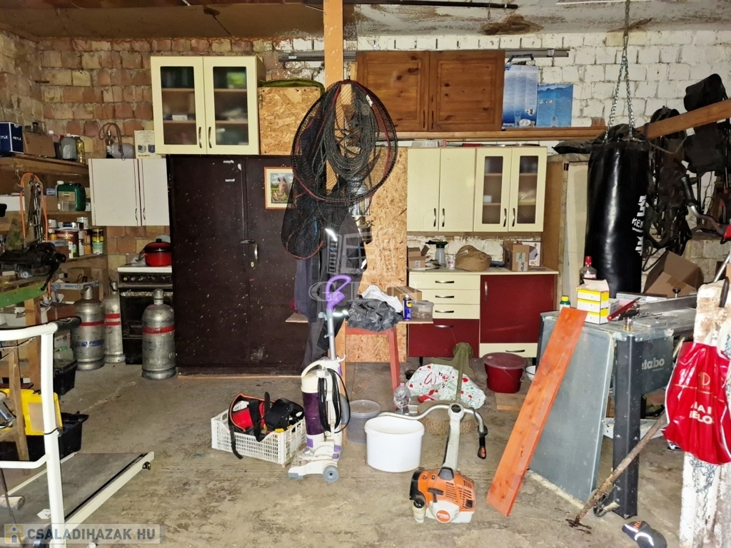 A telken egy masszív, kb. 65 m²-es melléképület található, beton alappal, B30-as téglafalazattal, amely garázst műhelyet és tárolót foglal magába.
