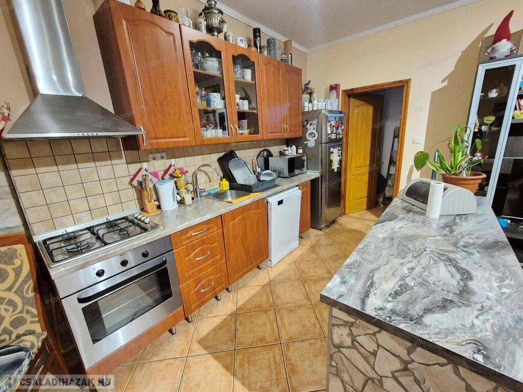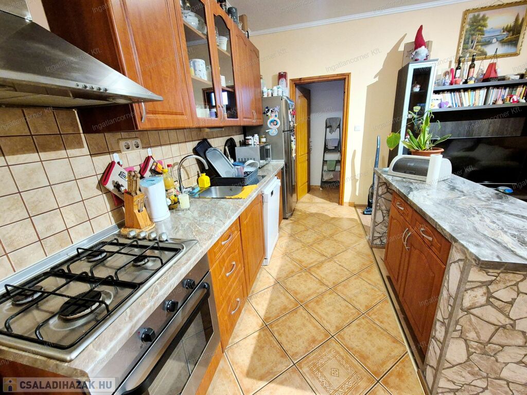 -BEÉPÍTETT KONYHABÚTOR: a vételár részét képezi, a beépített gépekkel: Zanussi márkájú gáz üzemű főzőlappal, légkeveréses sütővel és konyhai elszívóval felszerelve.