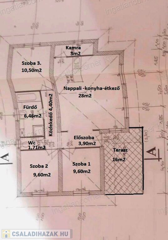 -Konyhából elérhető ablakos KAMRA HELYISÉG (3m2), amely méretének köszönhetően nem csak élelmiszer tárolására, hanem a szárítógép elhelyezésére is alkalmas.