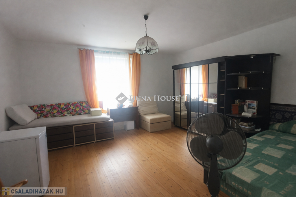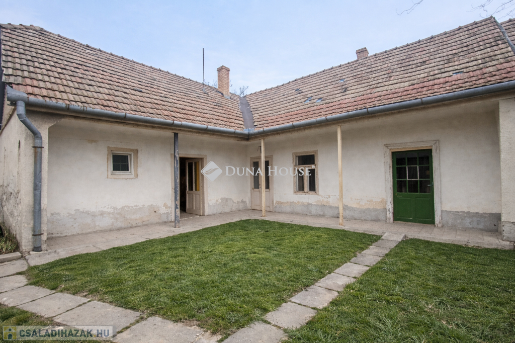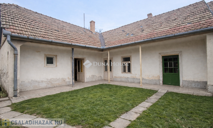Nagy telek, gyümölcsös, akácerdő tornácos ház eladó TolnanémedibenTolnanémedi központi utcájában eladó egy 84 m²-es, tornácos családi ház, amely egy ritka méretű, 4568 m²-es telken helyezkedik el. Az ingatlan felújítást igényel, ugyanakkor kiváló alapot kínál egy hangulatos vidéki otthon, gazdálkodásra alkalmas birtok vagy akár hétvégi ház kialakításához.A telek mérete és elrendezése miatt az ingatlan kiváló lehetőséget biztosít kertészkedéshez, gyümölcstermesztéshez vagy állattartáshoz is.A ház főbb jellemzői84 m² lakóterületvegyes falazatú, egyszintes, tornácos kialakításjelenlegi elrendezés:4 szoba + konyha + kamra + fürdőszobafűtés: cserépkályhaipari áram bevezetve, valamint további 2 vezérelt tarifa igényelhető27 m²-es műhely vagy tárolóhelyiségpadlásMelléképületekkülső WCfedett tároló kerti csappalpince és füstölőcsirkeólak és egyéb gazdasági épületekA telek4568 m² (20 m x 228 m), teljesen bekerítetthárom részre osztott kertgyümölcsfák a középső részena telek végében telepített akácerdőKörnyékTolnanémedi csendes, barátságos település, ahol a közműhálózat kiépített (áram, gáz, vezetékes víz, telefon). A közelben horgásztó és termálfürdő található, a településen óvoda is működik, így családok számára is ideális választás.Az ingatlan kiváló lehetőség azok számára, akik nagy telekkel rendelkező vidéki otthont keresnek, és saját elképzeléseik szerint alakítanák ki új életterüket. Ha szeretné megtekinteni az ingatlant vagy további információra van szüksége, keressen bizalommal!