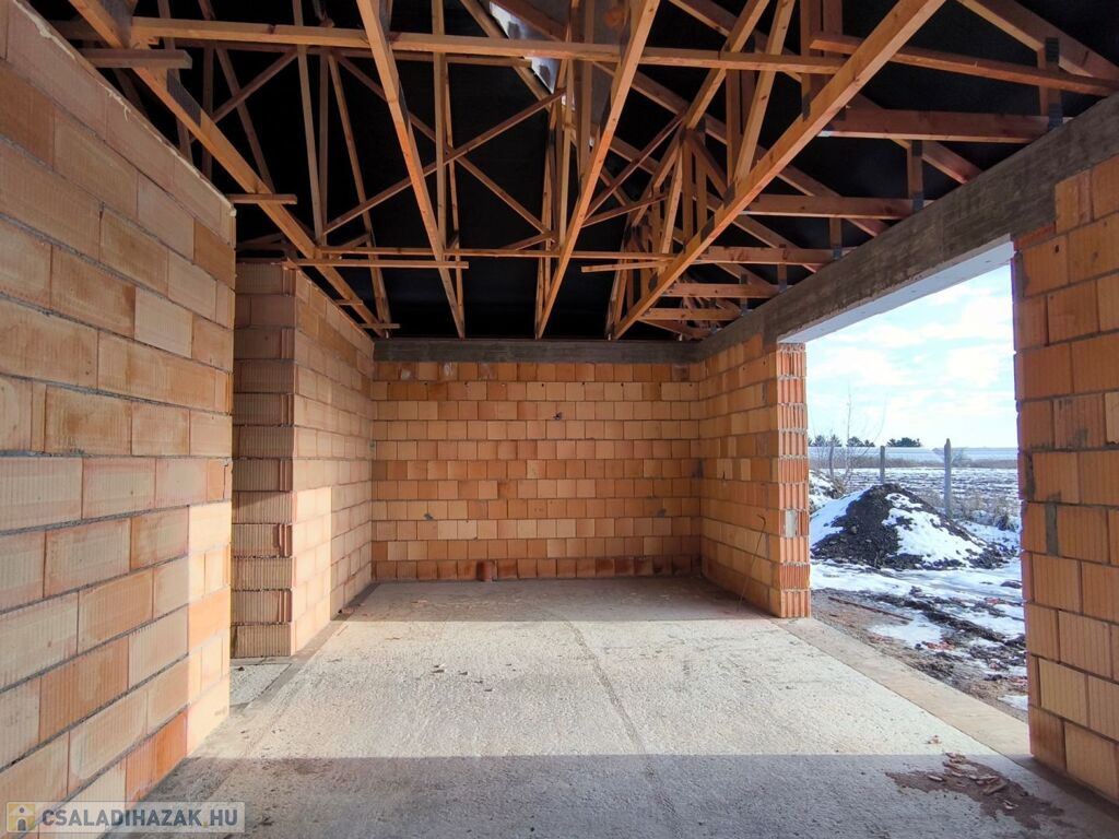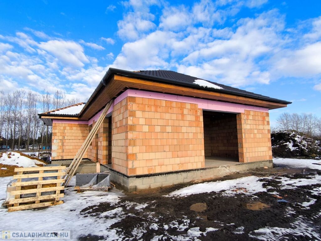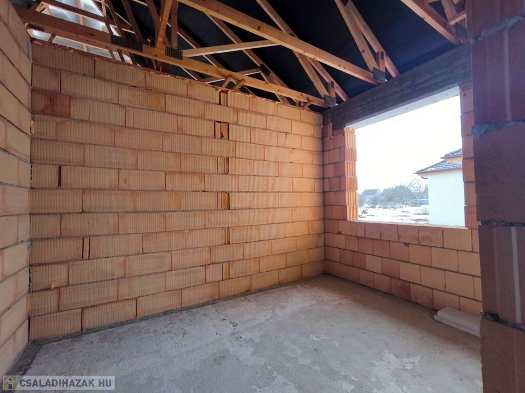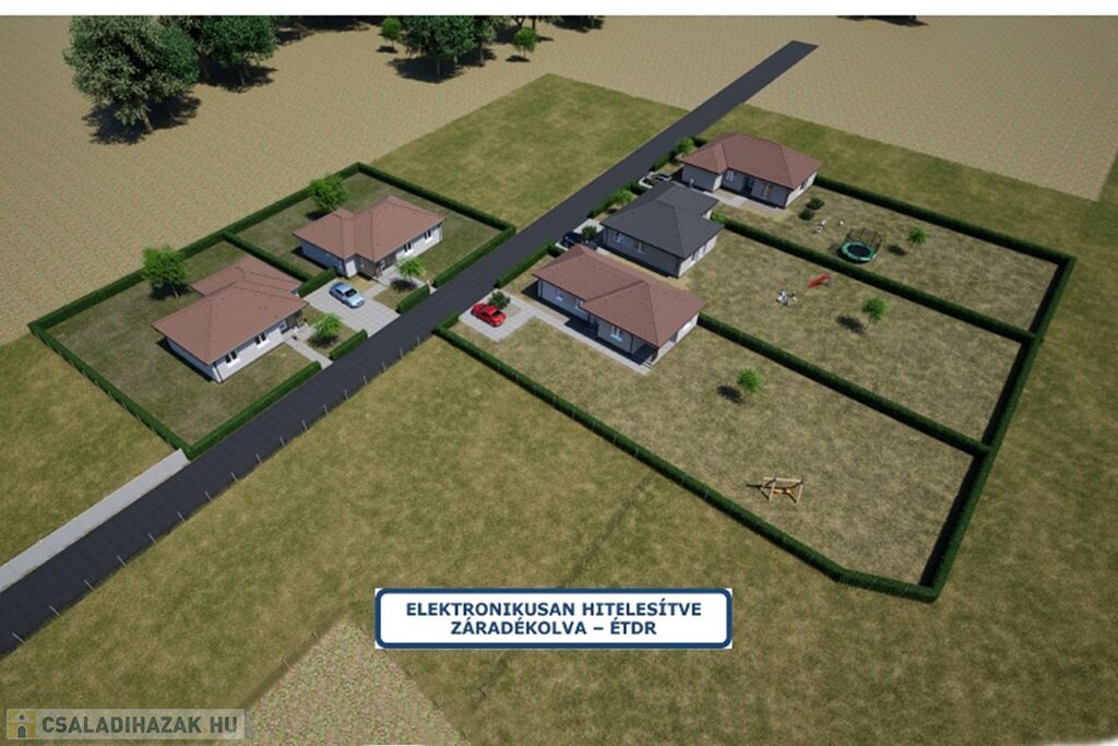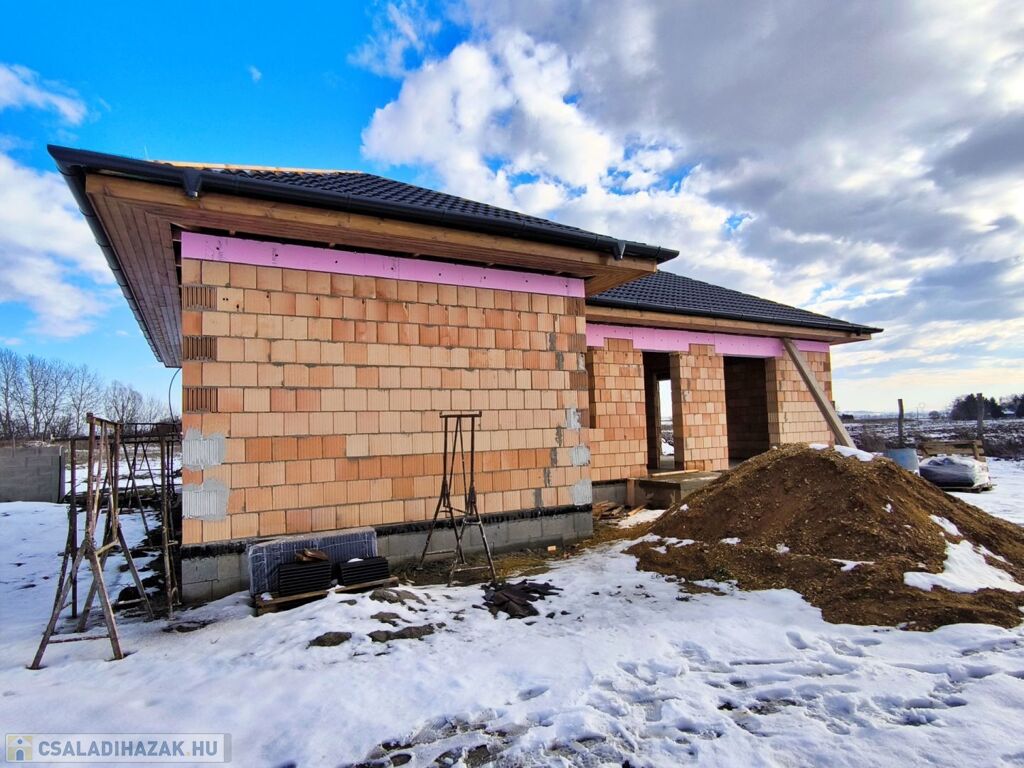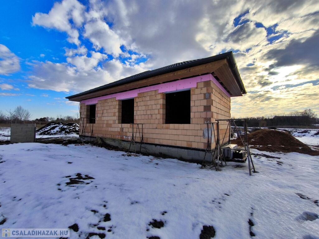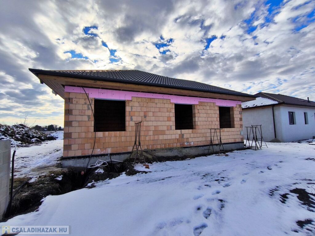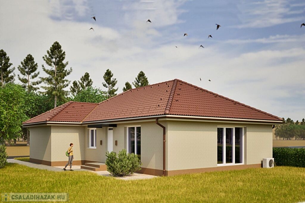 A ház helyiségei: amerikai konyhás nappali, 4 hálószoba, fürdő WC-vel, külön WC, kamra, háztartási helyiség, előszoba, közlekedő. Másik fürdőszoba megoldható