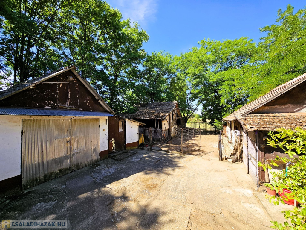 A tágas udvarban kerti csap és fúrt kút segíti az öntözést, emellett több tárolóhelyiség és nagyméretű, beton aljzatú ólak is rendelkezésre állnak, így akár önálló gazdálkodásra is alkalmas.