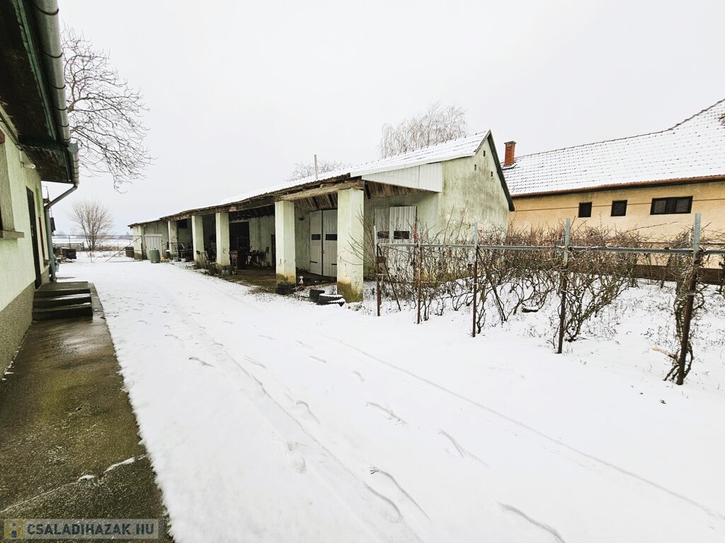 A házhoz tartozik egy 16,7 m²-es, elektromos kapus garázs és egy 32,6 m²-es fedett terasz, így a hasznos alapterület 170 m². Az épület alatt 100 m² pince, valamint beépíthető tetőtér is rendelkezésre áll. Az udvaron több melléképület, a telek végében kert található, fúrt kúttal, összközművel és 3 fázisú árammal.