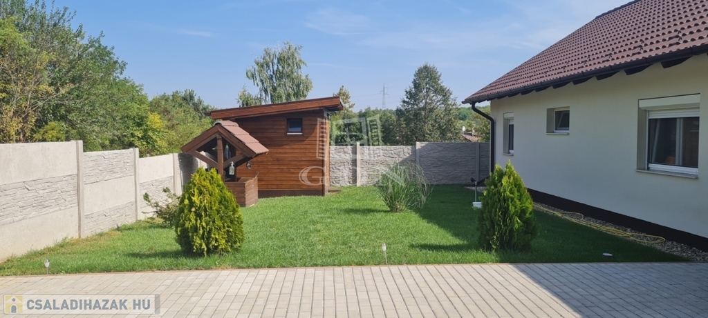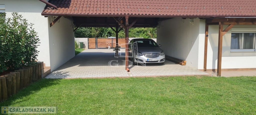 Tartozik hozzá 2 fedett autóbeálló és további 1 felszíni parkoló, kerti kisház, fedett grillterasz és gondosan parkosított kert.