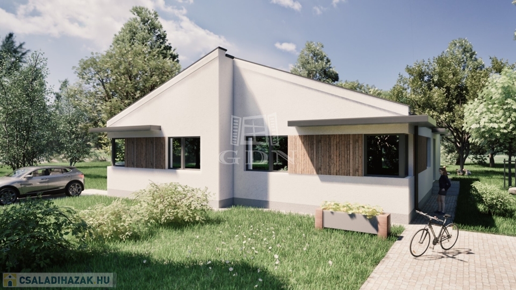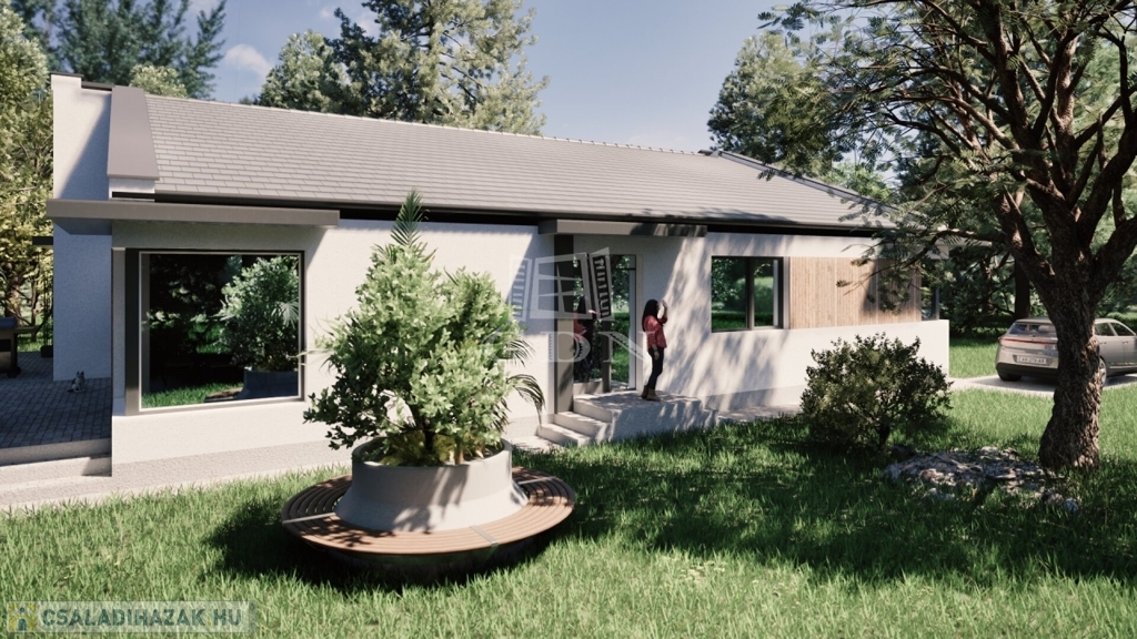 A ház 96 m²-es, világos, jó tér elosztású alaprajzzal és A+ energetikai besorolással készül.
