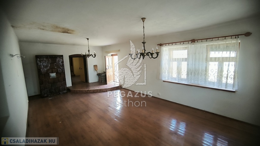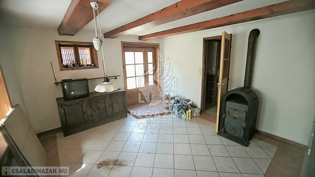 A ház első részében egy tágas szalon várja, melynek éke egy impozáns cserépkályha, mely nemcsak meleget, hanem otthonos légkört is áraszt. További két helyiség kiválóan alkalmas szobaként.