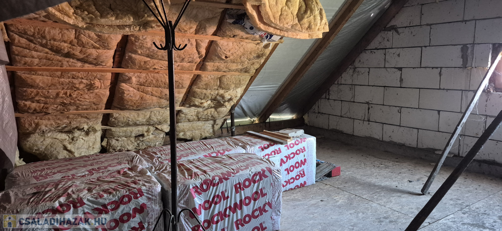 Beépíthető a tetőtér, már elkezdődött a szigetelése. Hozzá építhető még 230 m² lakás, mert 25% a beépíthetőségi százaléka, így 280 nm-es házzal