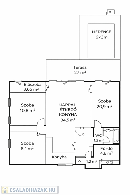 - Második fürdőszoba (kádas) a kényelmes készülődésért.