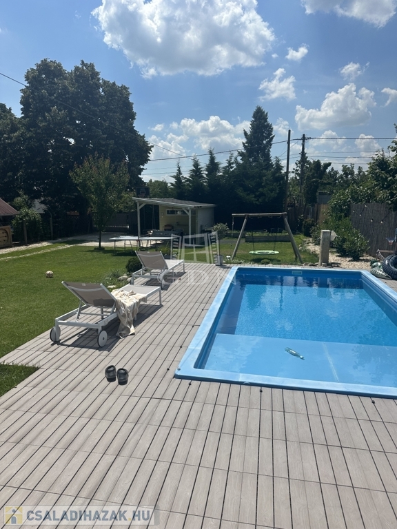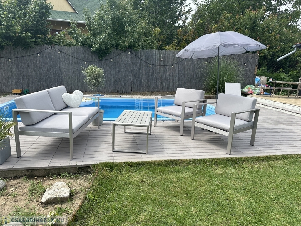 A parkosított kertben egy 6 X 3 méteres vízforgatós medence található. Ezen felűl egy 10 nm - es faház saját terasszal is rendelkezésre áll, amely ideális hobbinak vagy szerszámoknak.