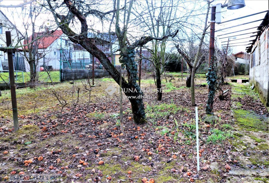 A telek 1062 négyzetméter alapterületű, gyümölcsfákkal beültetett.