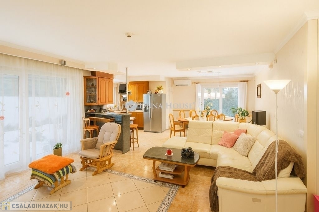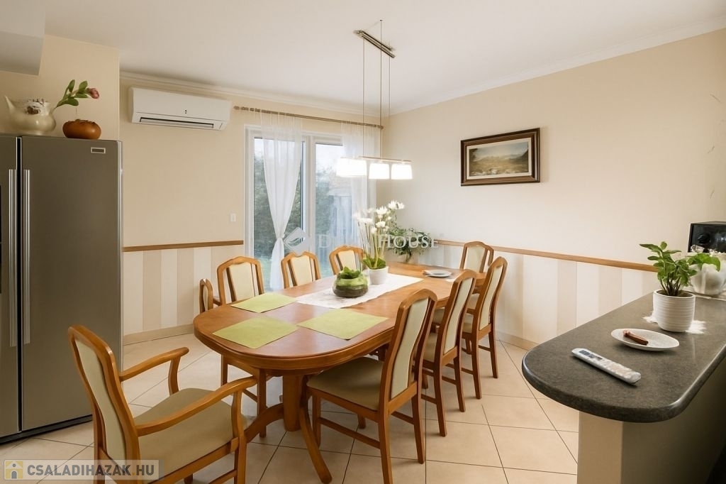 A ház 2005-ben épült, magas műszaki tartalommal és többféle modern fűtési rendszerrel. A napelemek, a fűtő-hűtő klímák, a fűtési rendszerre kötött vízteres, fatüzelésű cserépkandalló, az infrapanelek és a padlófűtés garantálják az alternatív, energiatakarékos működést és az alacsony rezsit.A prémium Internorm nyílászárók, a 024 órás riasztó- és kódbeléptetős bejárati rendszer, valamint a kamerarendszer és a vízlágyító tovább növelik az otthon kényelmét és biztonságát.Otthon és vállalkozás egy helyen!
