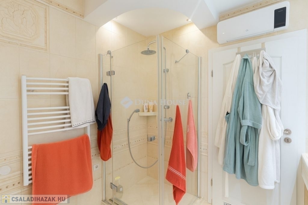 - Emelet: 3 hálószoba, luxus fürdő Wellis jacuzzis káddal, infraszauna- Kültér: három terasz, köztük egy fedett, motoros napellenzővel