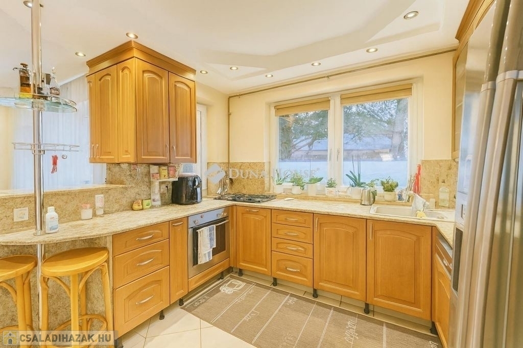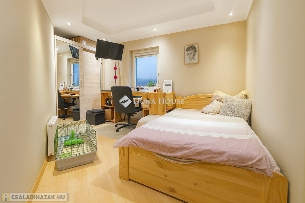 További extrák: Gondozott kert, 18 m²-es pince, valamint 4 autó számára alkalmas zárt garázs, amely a magas belmagasságnak köszönhetően akár szerelőműhelynek vagy raktározásra is alkalmas.