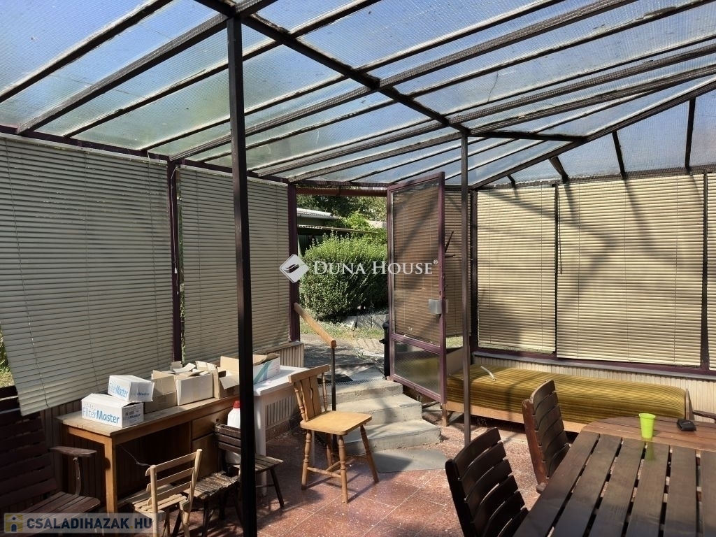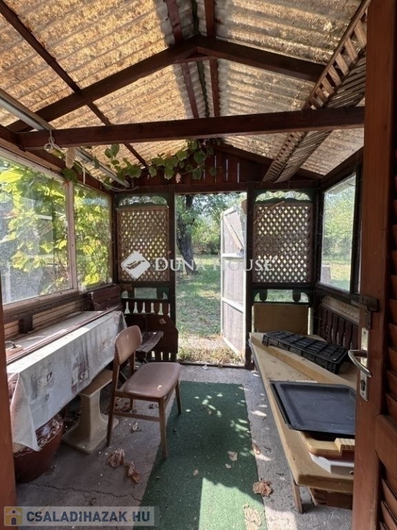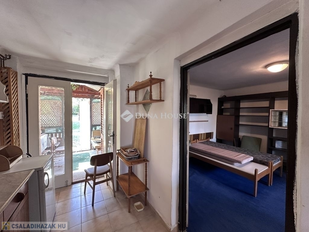 Egyéb épületek, kert:A hátsó kertben több funkcionális épület van még, egyikben ( 8 nm) egy szalagfűrész gondoskodott a fa aprításról, mellette egy tároló helyiség (4,4 nm) és a kert végében, az elkerített veteményes részen pedig egy számtalan befőzést látott melléképület (5,3 nm) található. A kertben számtalan gyümölcsfa található és végtelen nyugalom és csend.Az első udvar részen még található egy 16 nm-es fedett gépkocsi beálló is.