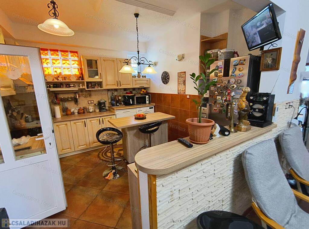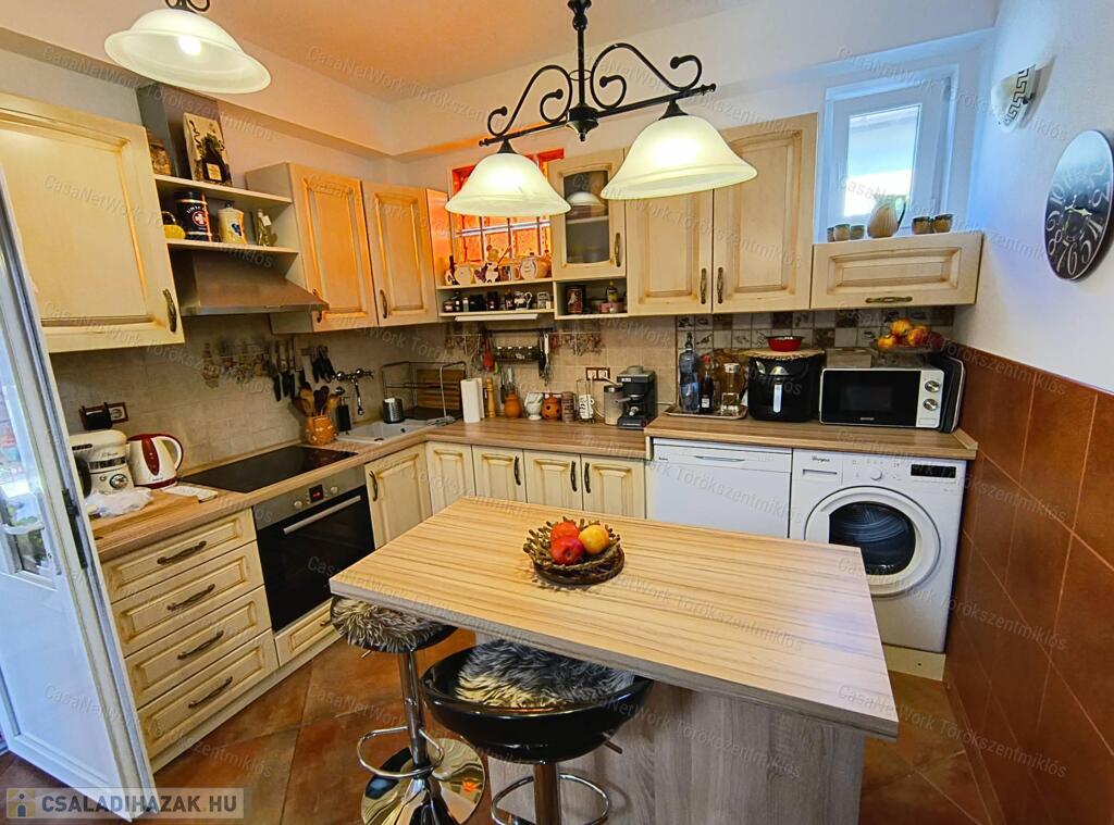 -az étkezős konyhában a magas kategóriás konyhai gépeken kívűl épített konyhapult, új sütő és indukciós főzőlap, páraelszívó, mosogatógép és szárítógép található /ezek az vételárban benne vannak/