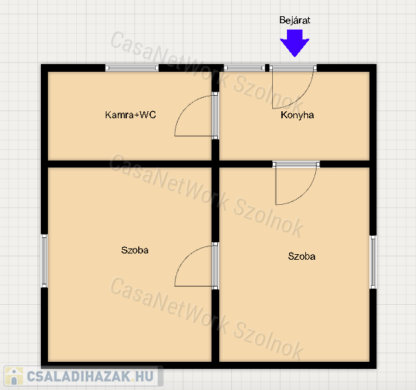 - a nettó lakótér 37 m2, amelyben a következő helyiségek kerültek kialakításra: konyha, kamra+WC, és két szoba, a fürdőszoba kialakítása az új tulajdonos feladata lesz