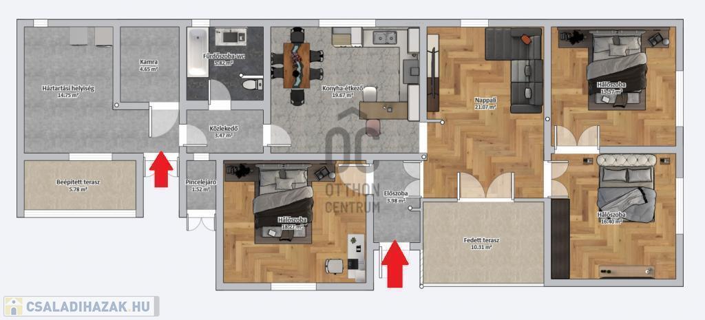 - Műanyag hőszigetelt nyílászárókkal ellátott.
