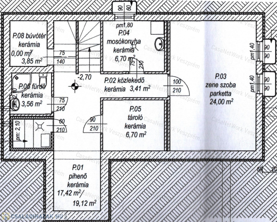 fürdőszoba, gardrób, nappali, loggia, galéria.