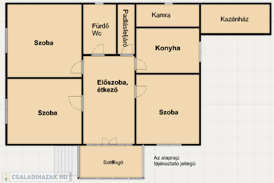 • tágas előtér, melyből a többi helység nyílik