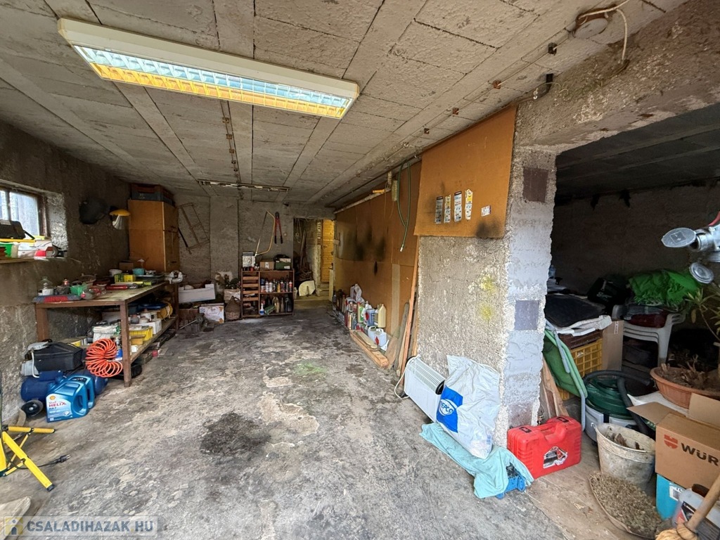 A földszinten garázs, műhely, kazánház, tüzelőtároló és több tárolóhelyiség kapott helyet, a garázsból pedig belső lépcső vezet közvetlenül a lakótérbe. Parkolás megoldott garázsban és az udvaron is.