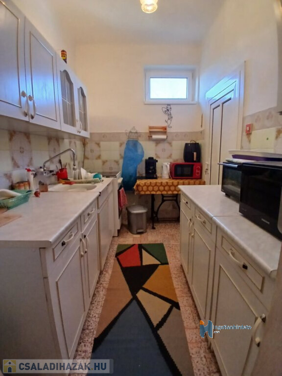 Elhelyezkedése: Belterület Tájolása: észak-nyugati tájolású Állapota: Jó Komfort besorolása: összkomfortos Építési éve: 1980 Alapterülete: 111 m2 Telekterülete: 600 m2 Szobák száma: 2szoba Közművek: Gáz, Víz, Villany, Csatorna Gázellátás: Vezetékes Vízellátás: Vezetékes víz Melegvíz-ellátás: Gázkazán Áramellátás: 230V Fűtés módja: Gáz Fűtés típusa: Konvektoros Homlokzat állapot: Jó Építési mód: Tégla Tető formája: Magas Tető anyaga: Cserép Parkolási lehetőség: Utcán, Telken Kilátás: Utcafronti kilátás, Udvari kilátás Napelem: Nincs adat Jellemzői: Alacsony rezsi, Csendes környék, Jó közlekedés, Két bejárat, Redőny, Étkező, Udvari terasz, Beépített konyhabútor, Autóbeálló, Kert, Kerítés, Riasztó, Saját fúrt kút, Zöldterület, Jó közbiztonság Energetikai besorolás: Nincs adat Egyéb jellemzők: Terasz, Melléképület, Pince Tv, Internet: Kábeltévé, Internet Közelben: Iskola, Óvoda, Vasútállomás, Autóbuszállomás, Helyi autóbuszállomás, Orvosi rendelő, Bolt, Gyógyszertár, Postahivatal, Vendéglátó egység, Autópálya Rezsi költség(Ft): 35000 Terhelések: Tehermentes ingatlan