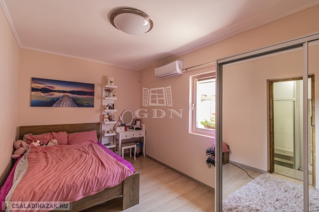 Az épületet kondenzációs gázcirkó, 3 db klíma, 2 + 1 félszoba (alaprajzon tároló), amerikai konyha - nappali, füdőszoba, mosókonyha, valamint egy önálló 30 nm-es tároló jellemzi.