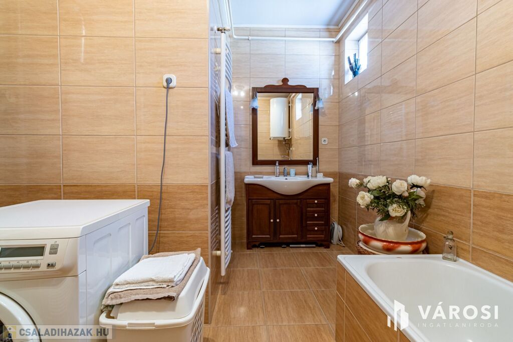 A melegvízet gázbojler biztosítja. Riasztó és kamerarendszer is működik a házban. Klíma csak az egyik hálószobában került felszerelésre.