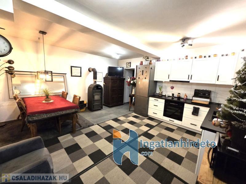 Elhelyezkedése: Belterület Tájolása: Déli tájolású Állapota: Használt - felújított Komfort besorolása: összkomfortos Építési éve: 1950 Alapterülete: 150 m2 Telekterülete: 6 165 m2 Szobák száma: 4szoba Felújított: Felújított Felújítás éve: 2004 Felújítás során elvégzett munkák: Festés, Villanyrendszer csere, Vízrendszer csere, Fűtésrendszer csere, Csempe csere, Járólap csere, Parketta csere, Fűrdőszobai szaniterek cseréje, Belső átépítés, Tetőfelújítás, Új külső vakolat, Nyílászárók cseréje, Hőszigetelt nyílászárók beépítése, Redőnycsere Közművek: Gáz, Víz, Villany, Csatorna Gázellátás: Vezetékes Vízellátás: Vezetékes víz Melegvíz-ellátás: Villanybojler Áramellátás: 230V Fűtés módja: Gáz, Fa Fűtés típusa: Konvektoros, Kandalló Homlokzat állapot: Jó Építési mód: Tégla Tető formája: Magas Tető anyaga: Cserép Parkolási lehetőség: Telken Kilátás: Utcafronti kilátás, Udvari kilátás Jellemzői: Csendes környék, Jó közlekedés, Két bejárat, Redőny, Udvari terasz, Beépített konyhabútor, Kert, Kerítés, Zöldterület Energetikai besorolás: G Egyéb jellemzők: Terasz, Melléképület Tv, Internet: Kábeltévé, Internet, Vezetékes telefon Közelben: Iskola, Óvoda, Orvosi rendelő, Bolt, Gyógyszertár, Postahivatal, Vendéglátó egység Terhelések: Tehermentes ingatlan Eladásra vonatkozó információk: Kizárólag magánszemélyek jelentkezését várjuk