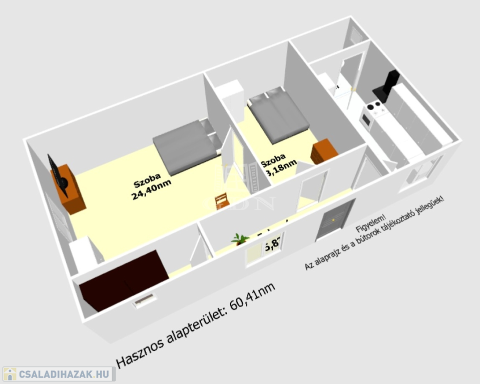 Az épület hasznos alapterülete 60,41nm melyben található: