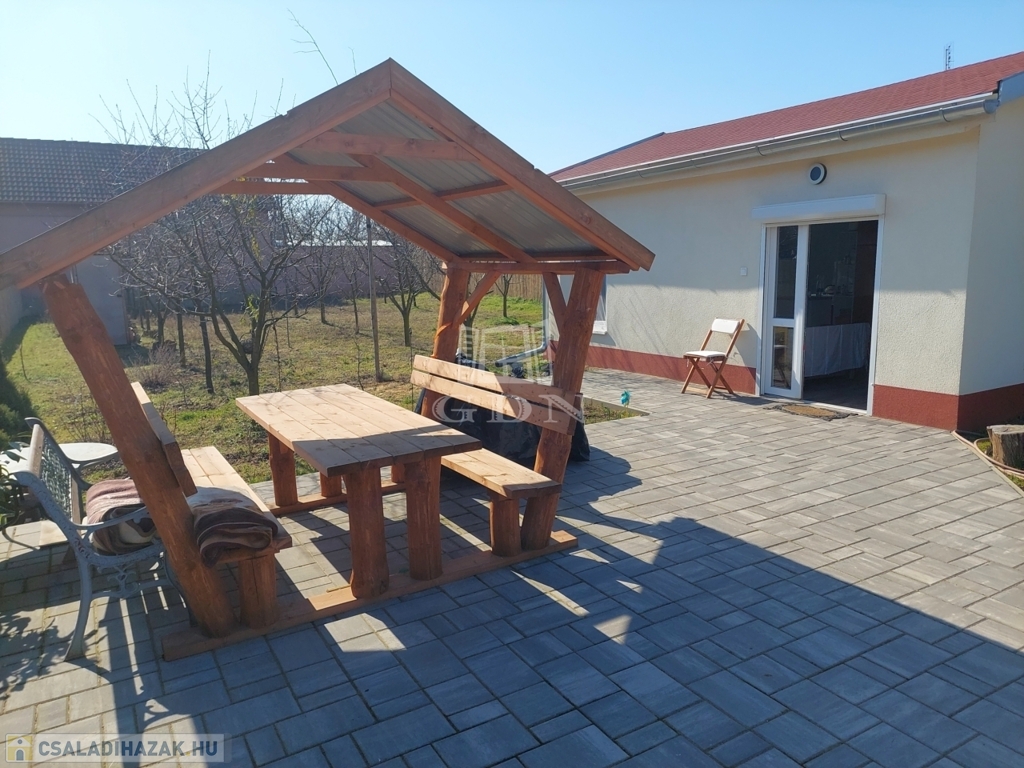 Mivel az ingatlan gyakorlatilag új, és csak alkalomszerűen volt használva, azonnal beköltözhető, felújítást semmilyen formában sem igényel. A kerítés nagyon szépen kivitelezett, gépkocsival a kapun keresztül lehet beállni. Az első udvar nagy része térkövezett, autó beállásra alkalmas, valamint a bejárattal szemben van elhelyezve a szintén új rönkfa oszlopokból készült kerti kiülő pad.