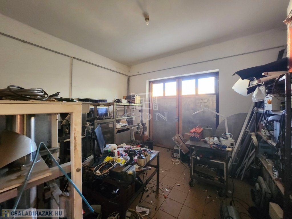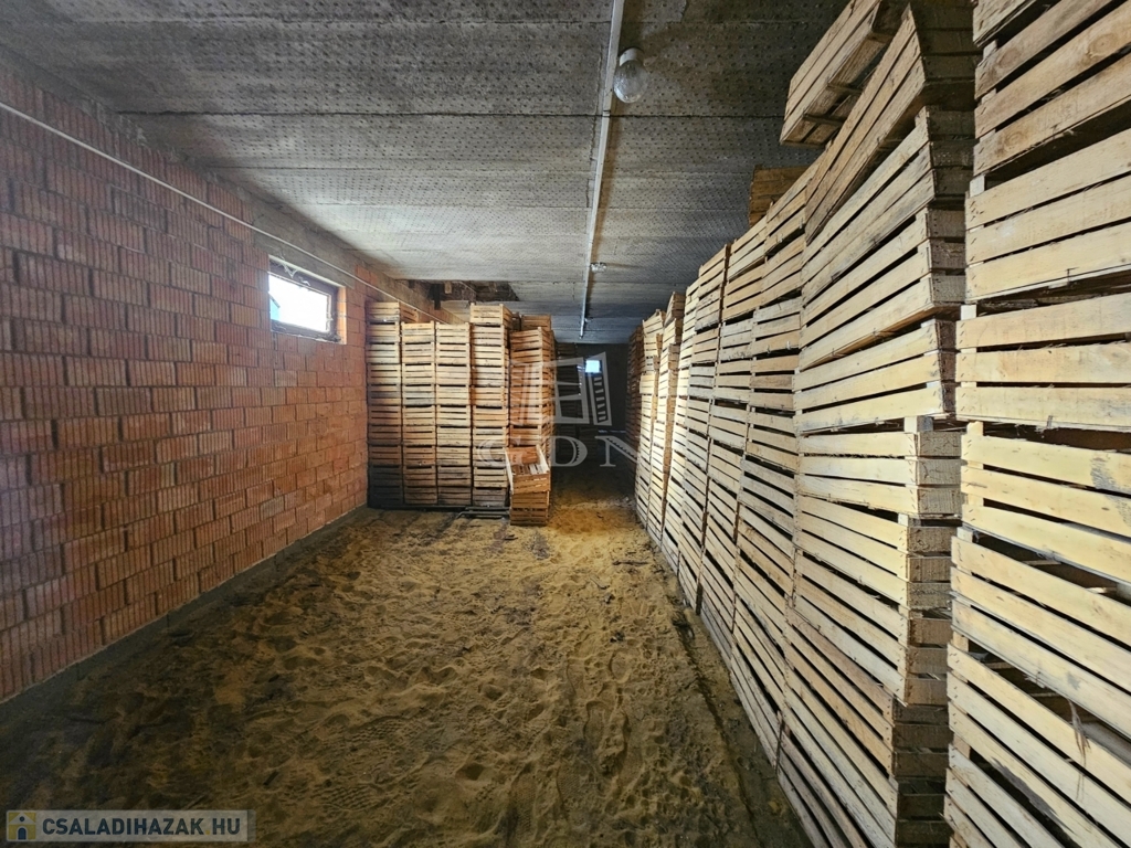 3. Mezőgazdasági csarnok 1998-ban épült, beton alapzattal, 30-as tégla falazattal. A pince és a földszinti födém is nagy teherbírású vas-beton födém. Az épület kifejezetten mezőgazdasági csarnoknak készült, évekig alma tároló és csomagoló üzemként volt hasznosítva. Az épület nagy beton rámpákkal rendelkezik, hogy a tehergépkocsikról közvetlenül lehessen a rámpákra rakodni. A pince száraz és nyáron is kellemes hűs levegő van benne. Az épület állapota kiváló, könnyen átalakítható, ipari üzemként vagy akár társasházként is hasznosítható.
