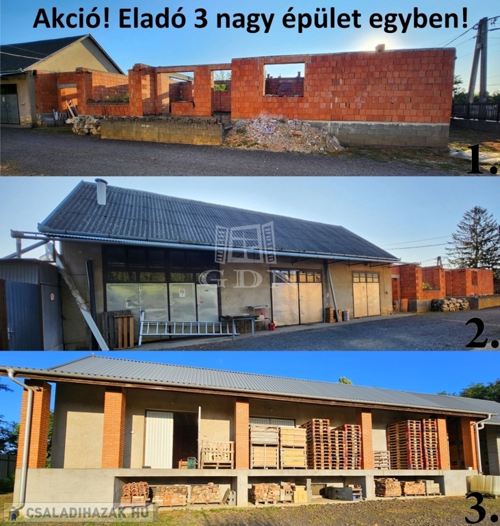 Újfehértó Bajcsy-Zsilinszky utcán egyben eladó 3 nagy épület (összesen 473nm), mely 1 félkész családi házból és 1 ipari üzemből és 1 mezőgazdasági csarnokból áll.