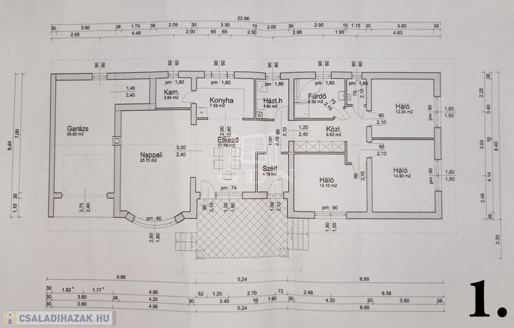 1. Félkész lakóház hasznos alapterülete 146nm melyben található: