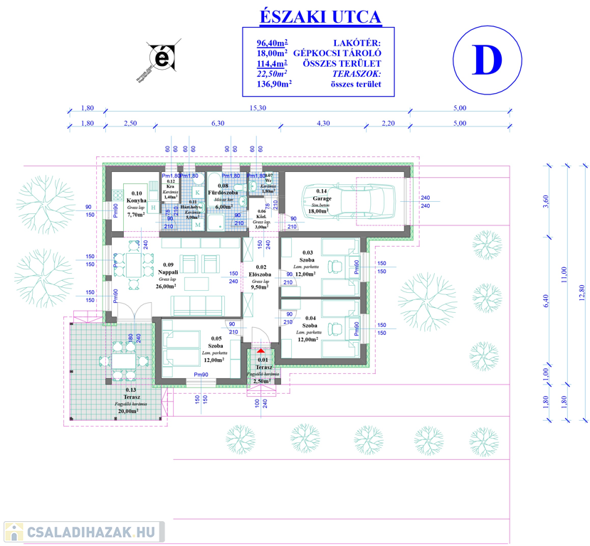 - 22,5 nm-es fedett terasz